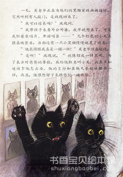 关老爷住在黑猫岭上,是一户以乌黑油亮的皮毛而闻名的高贵的猫族。有一天,关老爷的夫人生了四只黑猫,这让他欢天喜地。