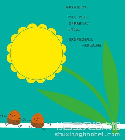 时钟的书①橡果宝宝和表针一边快乐的玩耍,一边在问一个问题“现在几点了?”。这本绘本让宝宝在往前阅读的过程中,学会钟表几点和几点半的读法。