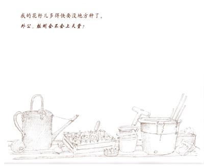 这个故事通过外公与小孙女无厘头的对话,将生活中的点点细节呈现在读者面前。小女孩的天真与老外公的从未消失的顽童之心将故事徐徐推进,生活永远不会结束,故事的结尾呢,也要读者慢慢体会了。