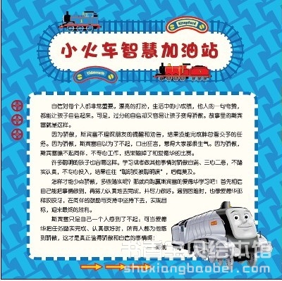 本次推出的《超级小火车俱乐部》一套12册,共24个小火车的故事,以故事的形式讲述了每个小火车的成长经历,介绍了他们性格特征,他们做过的或有趣、或勇敢、或调皮的事,通过阅读这一批故事,小朋友能够深入地了解“托马斯和朋友”里的每一个与众不同的小火车,因为不同,所以精彩。同时,小朋友也能以火车为榜样,学会很多品德上的东西。