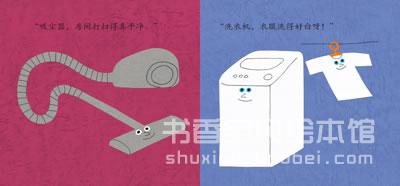 本书以孩童的视角看家中的日常事物。杯子、牙刷、毛巾、锅碗瓢盆、被子、枕头、各种玩具,都被作者赋予了生命,全都有五官,并表现出形式各异的种种表情。