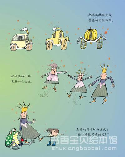 巫婆的孩子和普通的孩子一样,喜欢在免除了成人权威的同伴中间,展示自己的本领,虽然有时候也会不自量力,炫耀能耐之后却无法收拾残局。女孩小美变成了青蛙,青蛙变成了王子,王子怎么变回小美呢?被魔法折腾的伙伴们,如何恢复真身呢?可真让人着急啊!这样一个单纯的快乐的故事,给予孩子情绪愉悦的满足,也帮助孩子不经意间完成自我教育。