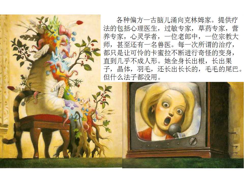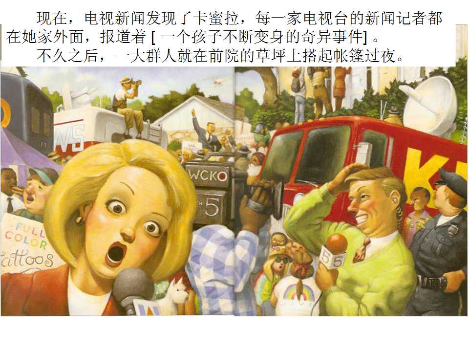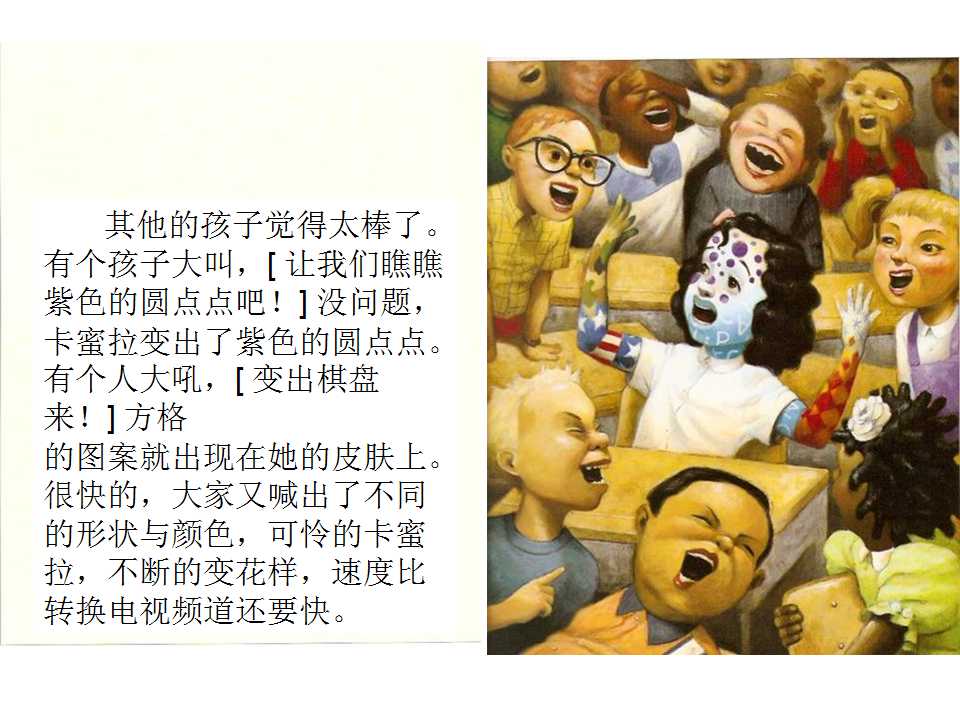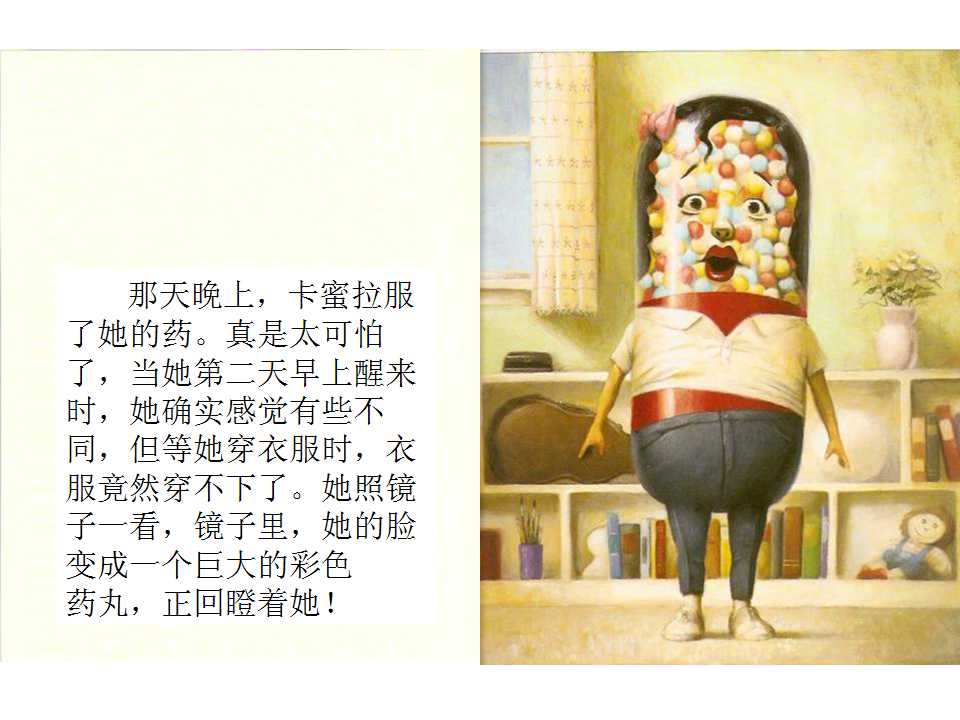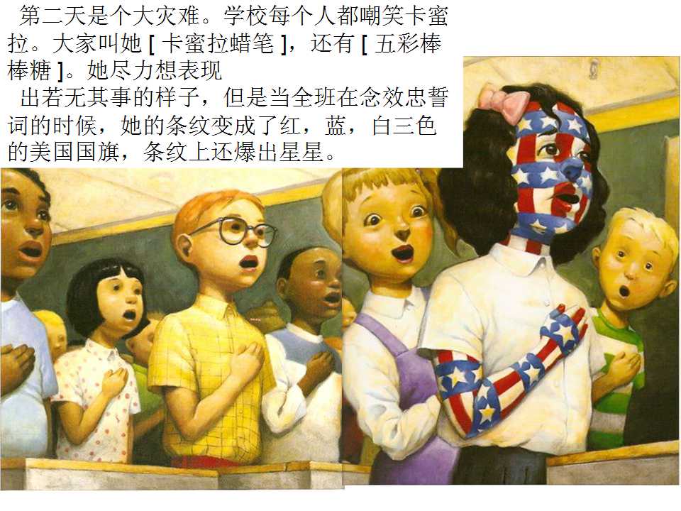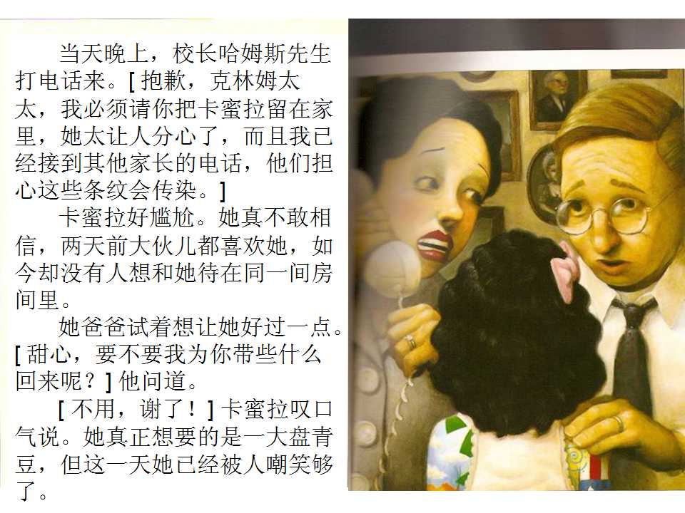 内容简介:这本《糟糕,身上长条纹了!》用夸张的故事情节和色彩搭配,讲述了一个小姑娘如何寻找自我的故事。小主人公卡米拉是一个很注重别人看法的孩子,虽 然喜欢吃青豆,但因为别人不喜欢,所以她也不吃。开学第一天,为了引起同学们的注意,换了几十套衣服也不满意。由此开始发生奇怪的事情。