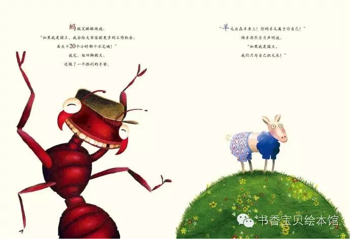 蚂蚁笑眯眯地说:“如果我是国王,我会给大家安排更多的工作机会,每天干20个小时都干不完哦!”