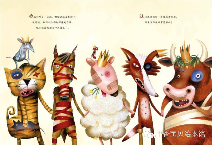 动物们吓了一大跳,都惊讶地看着狮子,这时候,他们个个都打得金疲力尽,根本就没兴趣当什么国王了。