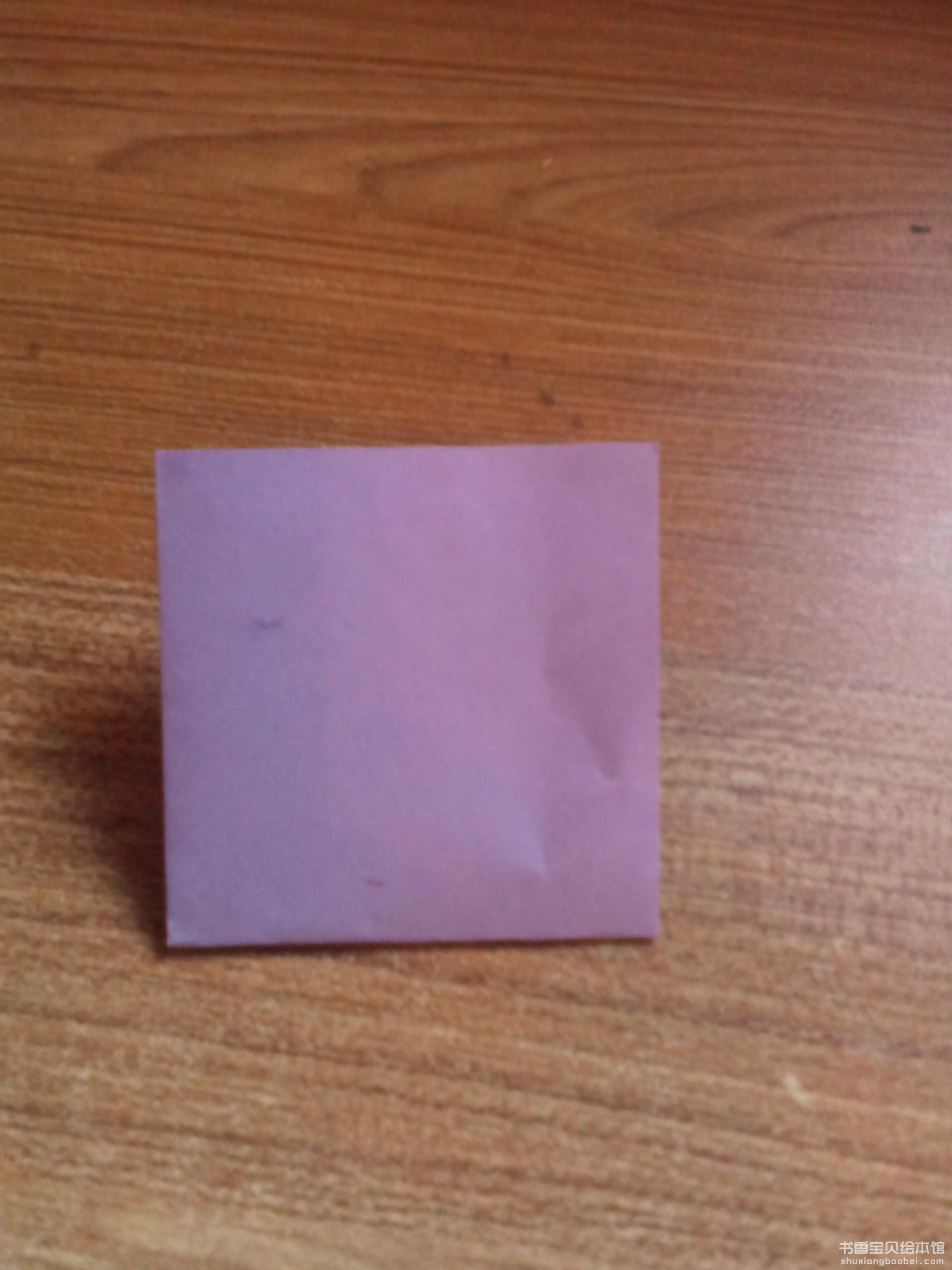 1、取正方形纸,对折两次找到中心点展开,将两边向中心折,再将上面一层向外折。
