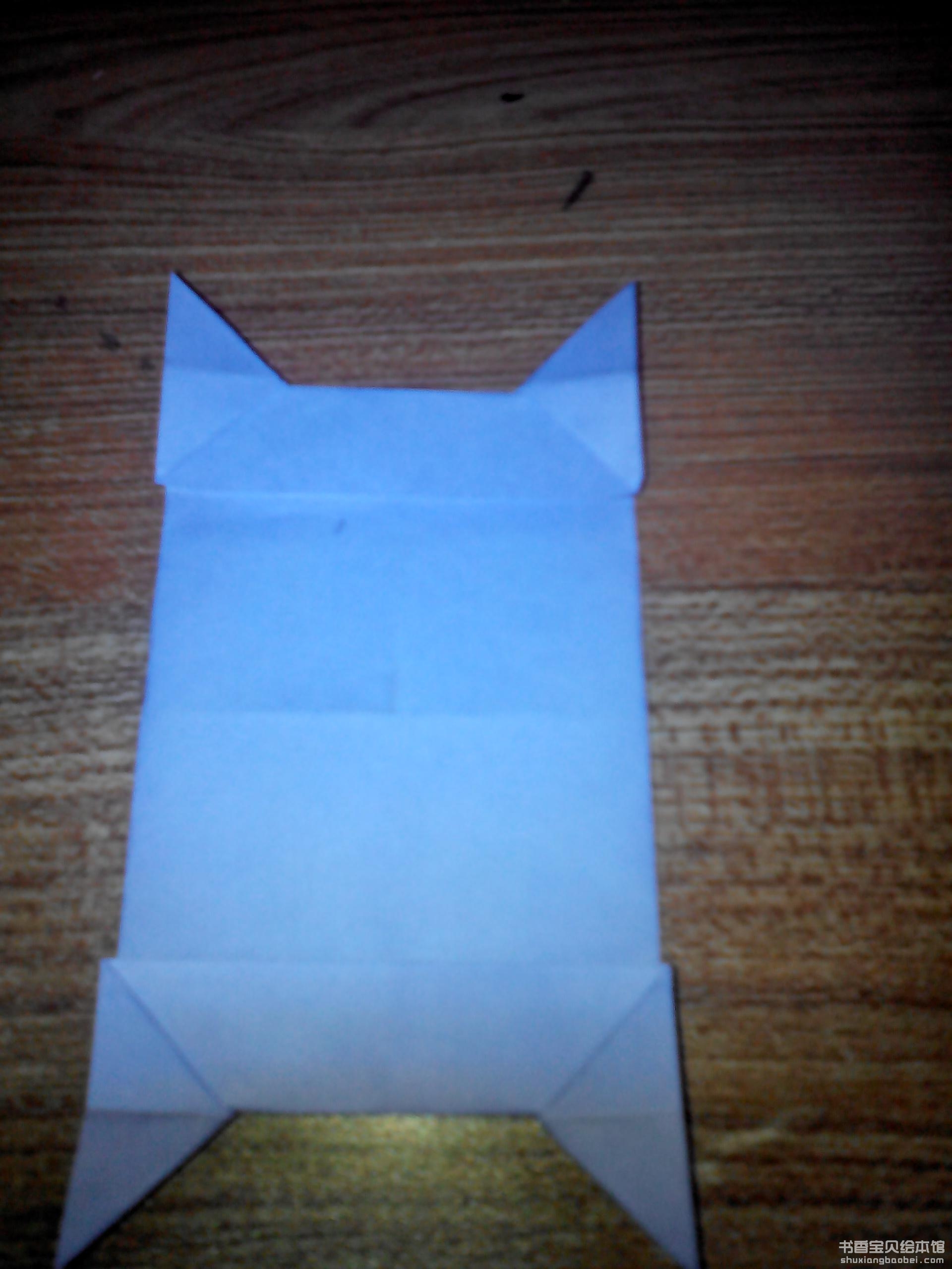 3、拉折另外两角,向后折边角,稍作整形即完成了一张小床。