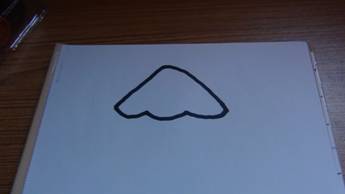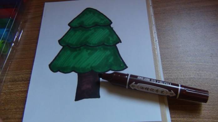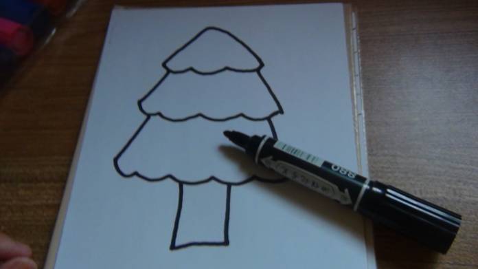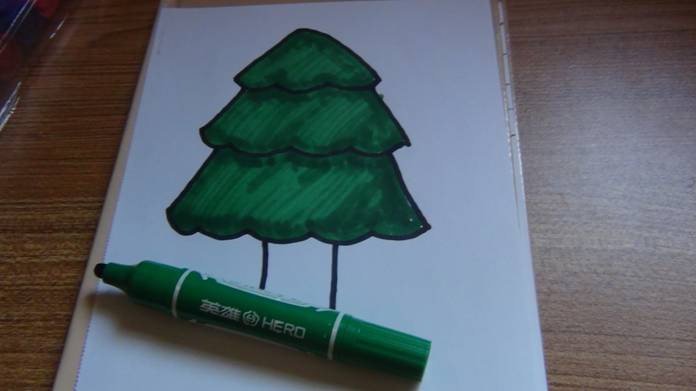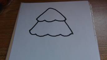 拿出黑色的笔画出一个三角顶,下面画出鱼鳞线,依次画出下面的第二个第三个