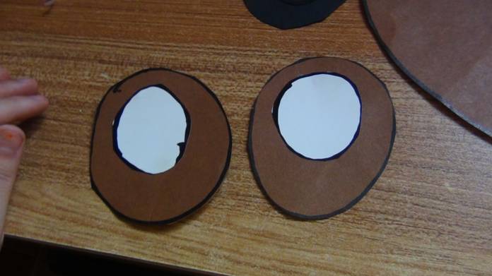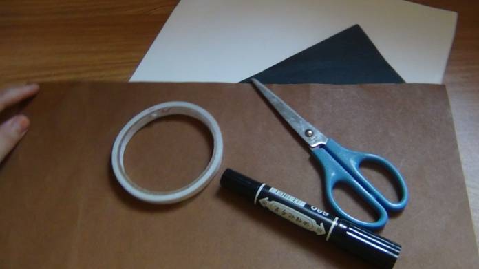 准备:剪刀、笔、白色、黑色和棕色的卡纸、双面胶