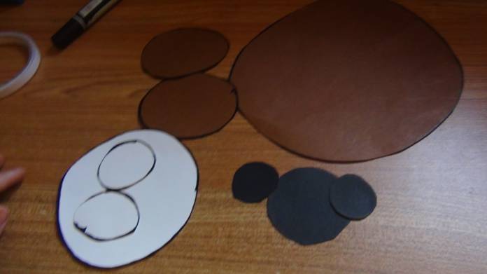 把画好的形状都剪下来,分别是熊的头、耳朵、眼睛、鼻子、嘴巴