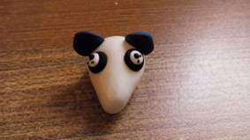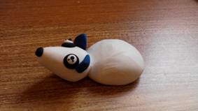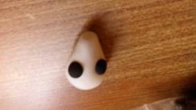 再取出头两倍的白色太空泥,搓圆并压成半圆行,和头连在一起!