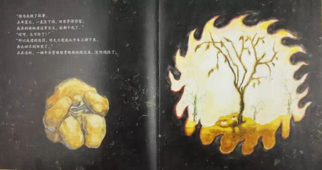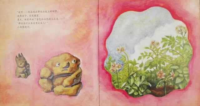 “我呀......本来住在那边山坡上的田里,我养谷子,还有蔬菜。夏天,田里开满了紫色和白色的土豆花......”