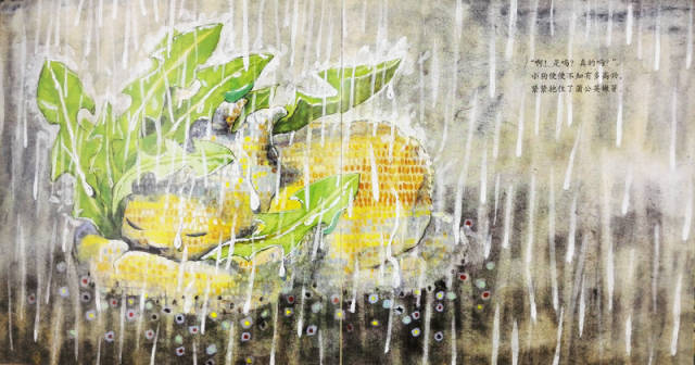 春雨嘀答嘀答下了三天。小狗便便全身泡在雨水中,渐渐融化了......融化的便便渗进土壤,聚集到蒲公英的根部。顺着茎梗向上,长出了一个花骨朵。
