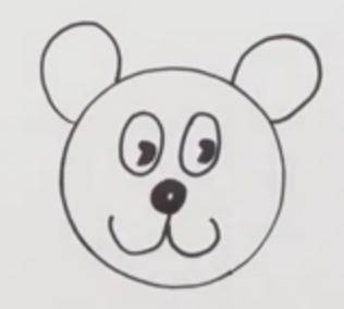 4、在眼睛下方画小圆,并将其内部涂黑留小圆做鼻子,然后在鼻子下面向两边画半圆做嘴唇。