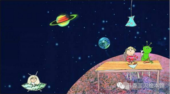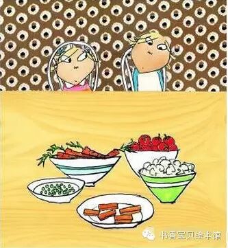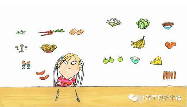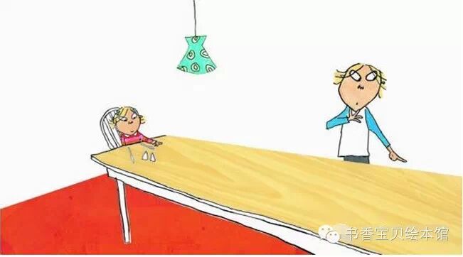 萝拉看着桌子,说:“可是,为什么这里还有胡萝卜呢,查理哥哥?我永远不吃胡萝卜。”
