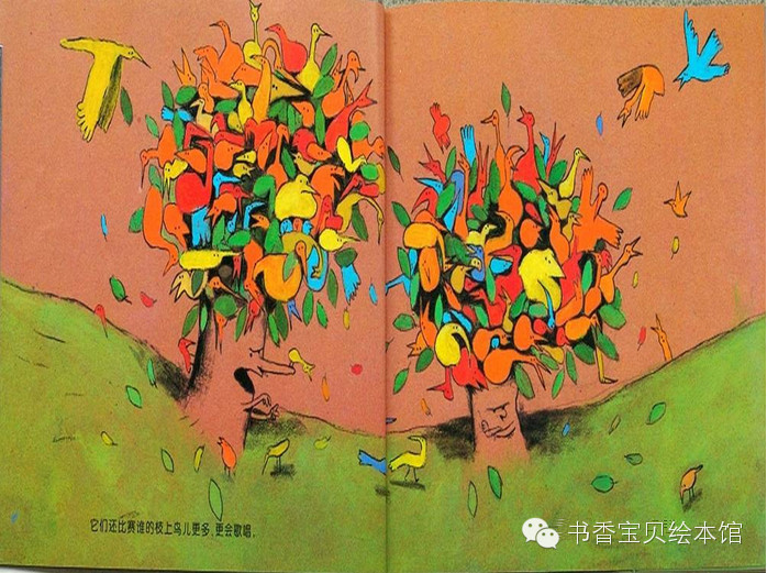 它们还比赛谁的枝上鸟儿更多、更会唱歌。