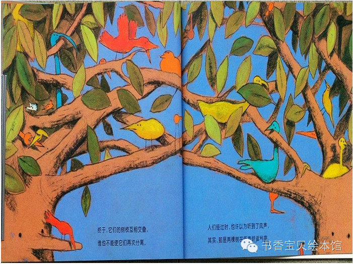 它们又在比赛谁的枝上绿叶更多、鸟儿更多。