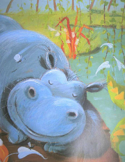 然后,他向睡觉的河马跑去。