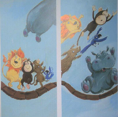 这河马躺在桥当中,我过不去。他非走开不可。”