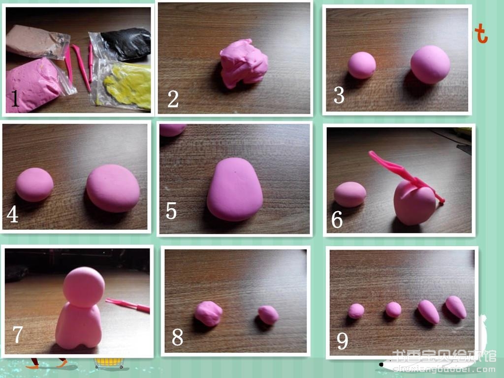 8取出肉色太空泥搓圆做小熊嘴巴的位置。