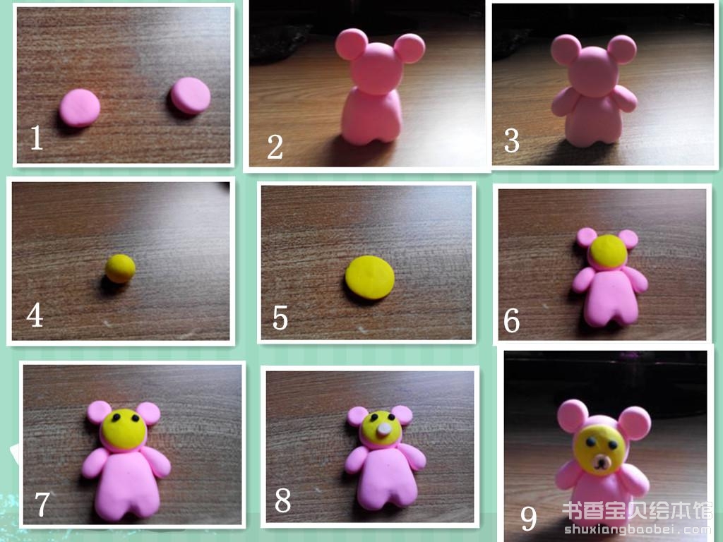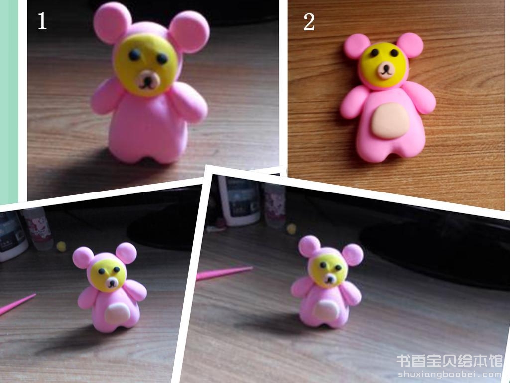 3把水滴状太空泥放到头与身体相交的地方做小熊的手臂。