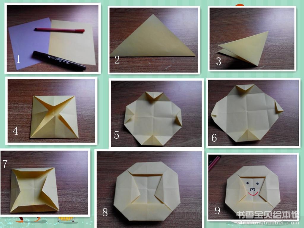 把折好的猩猩头粘贴上,折纸猩猩就完成了!