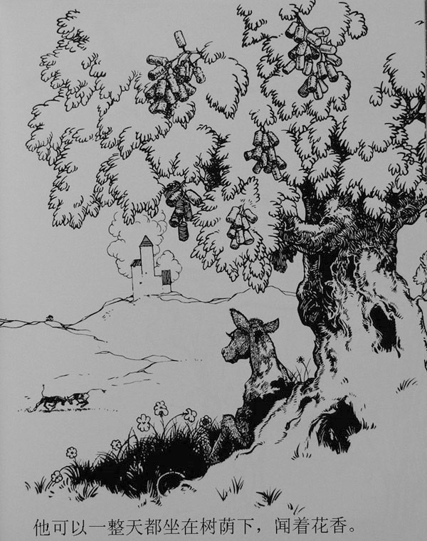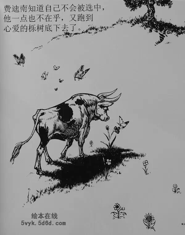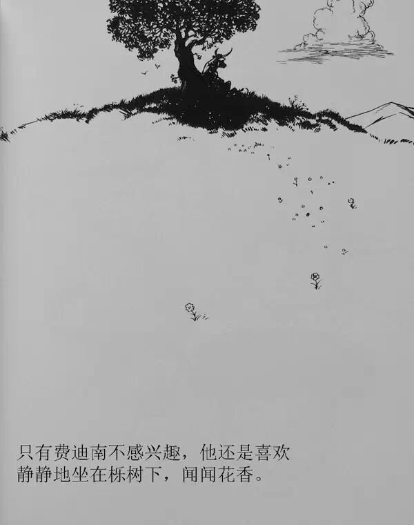 只有费迪南不感兴趣,他还是喜欢静静的坐在栎树下,闻闻花香。