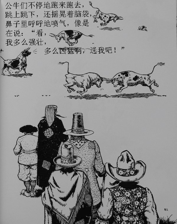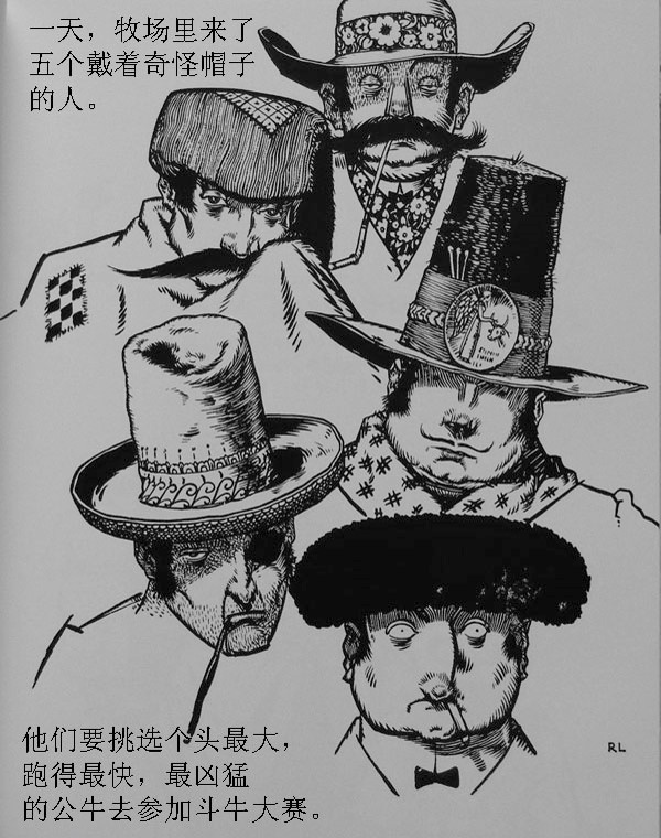 一天牧场里来了五个戴着奇怪帽子的人,他们要挑选个头最大,跑的最快,最凶猛的公牛去参加斗牛大赛。