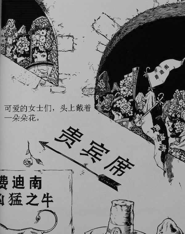 但是费迪南看到了女士头上那些漂亮的花,他静静的坐下来,闻着花香。