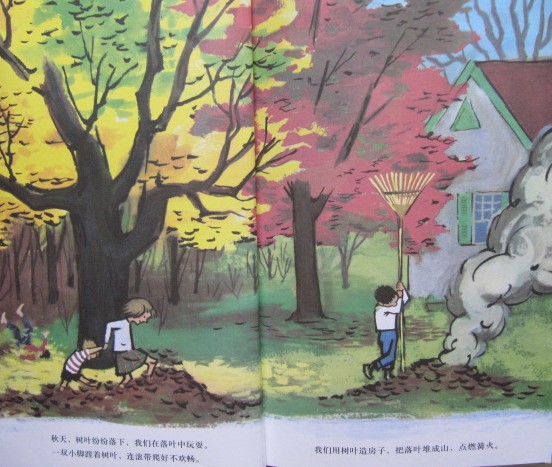 我们用树叶造房子,把落叶堆成山,点燃篝火。