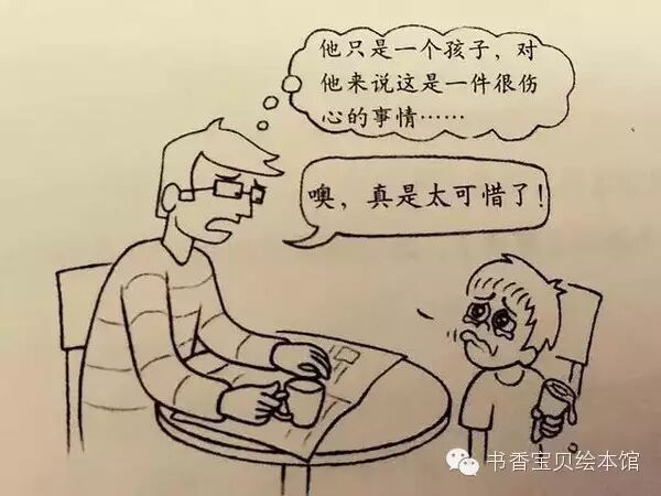 孩子仍然很伤心,爸爸给了更多的同情和理解;爸爸的话,让孩子觉得自己获得了重视和理解,所以悲伤情绪没有加重,而是思考该怎么才能改善目前的情况