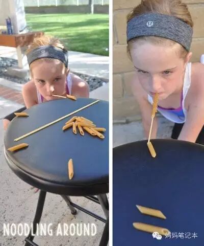 长意面和空心意面就能玩起来,比一比谁串得多。