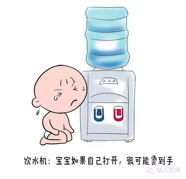2.饮水机:宝宝如果自己打开,很可能烫到手;